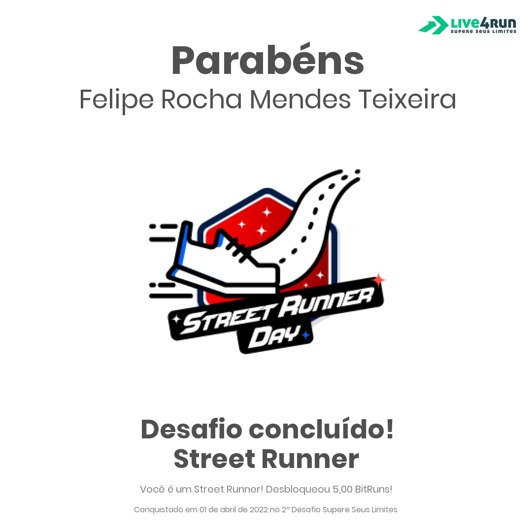 Você é um Street Runner! Desbloqueou 5,00 BitRuns!
