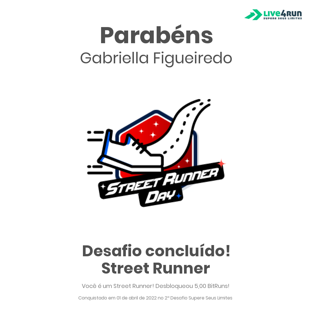 Você é um Street Runner! Desbloqueou 5,00 BitRuns!