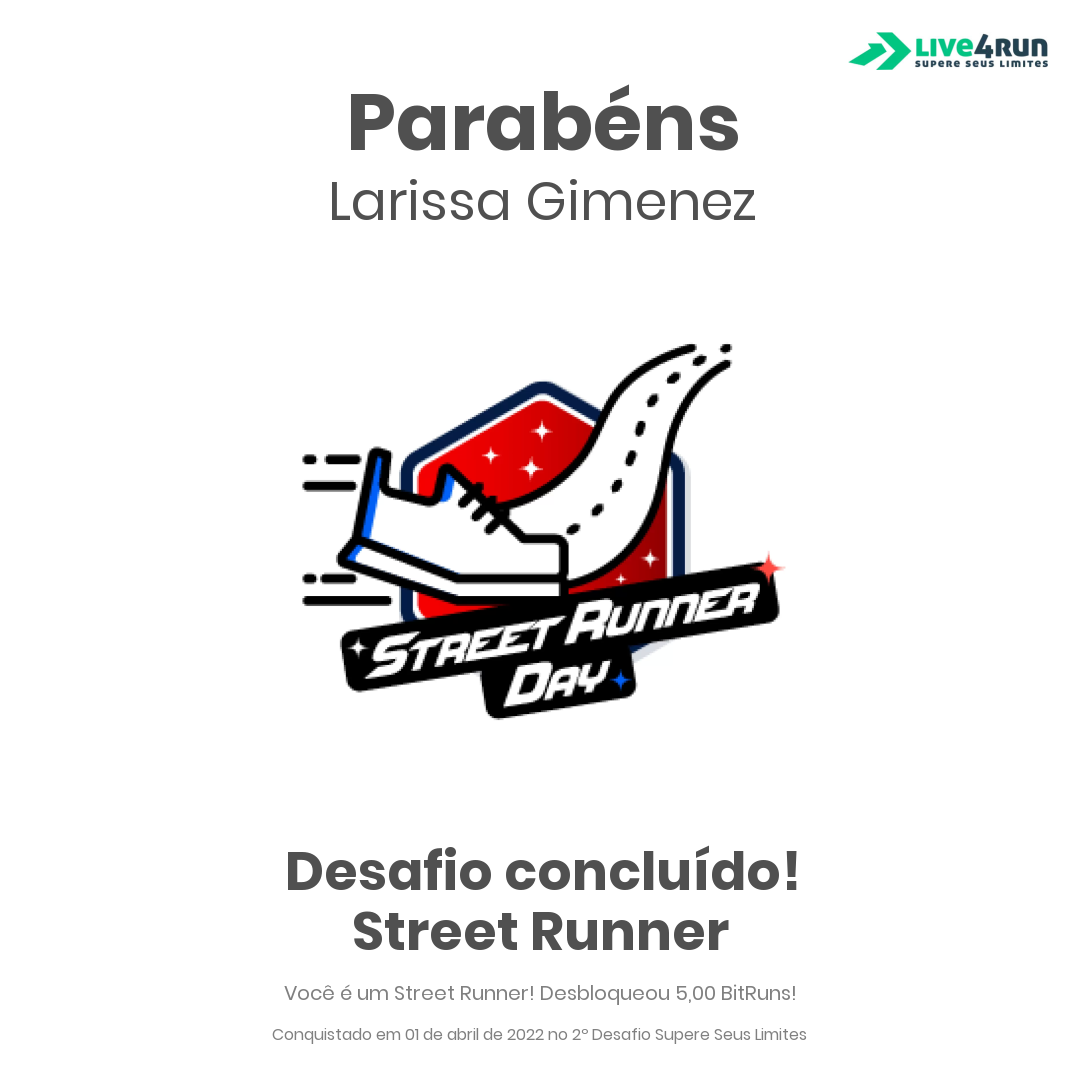 Você é um Street Runner! Desbloqueou 5,00 BitRuns!